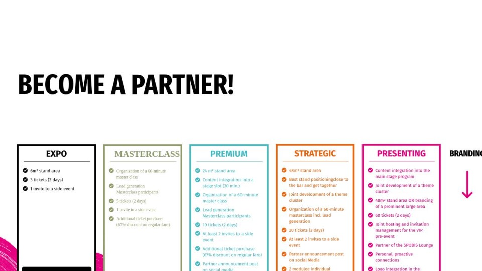 Rights to the title "Official Expo Partner of the SPOBIS Conference" and logo display (website, program, social media, app, etc.)