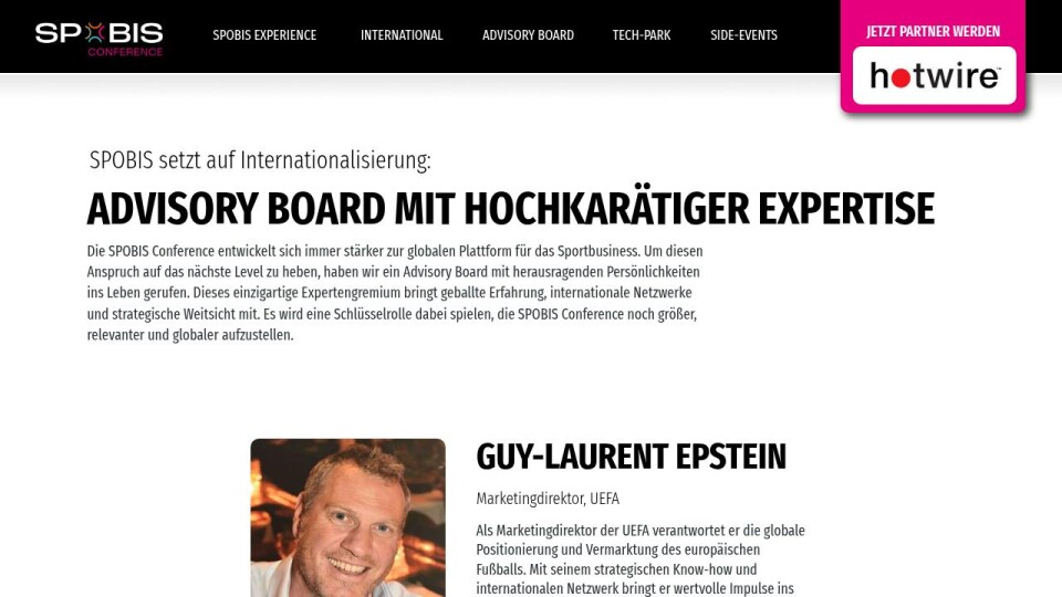 Die SPOBIS Conference entwickelt sich immer stärker zur globalen Plattform für das Sportbusiness. Um diesen Anspruch auf das nächste Level zu heben, haben wir ein Advisory Board mit herausragenden Persönlichkeiten ins Leben gerufen. Dieses einzigartige Expertengremium bringt geballte Erfahrung, internationale Netzwerke und strategische Weitsicht mit. Es wird eine Schlüsselrolle dabei spielen, die SPOBIS Conference noch größer, relevanter und globaler aufzustellen.